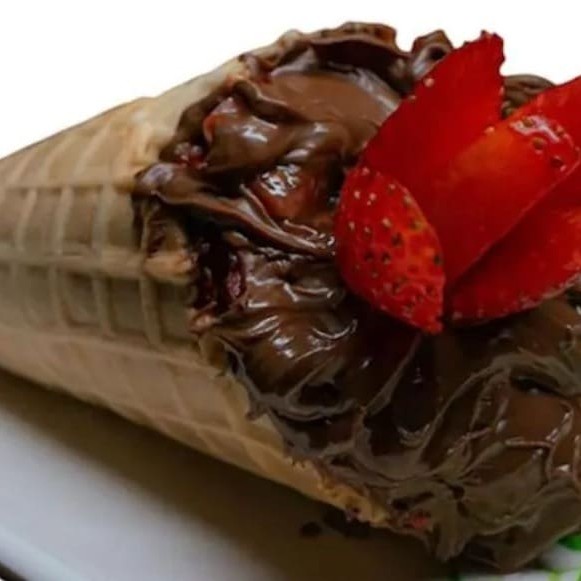Cone de chocolate com morango ou banana