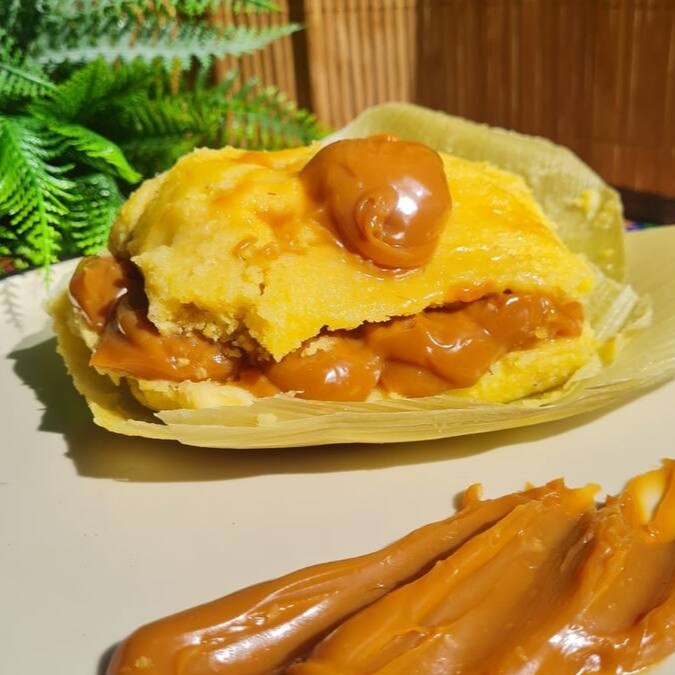 A Pamonha Doce de Leite é uma deliciosa iguaria artesanal que traz o sabor aconchegante e nostálgico do interior. Seu exterior é feito de milho macio e fresco, enquanto seu interior esconde um recheio generoso de doce de leite cremoso, que derrete na boca e tem um sabor absolutamente inesquecível. Foto Ilustrativa.