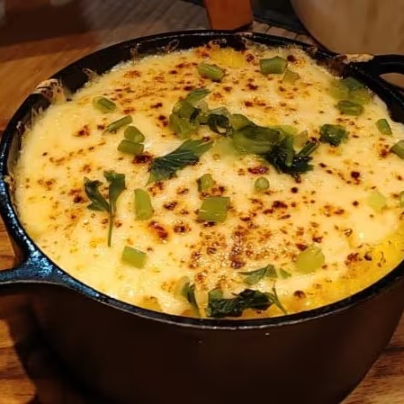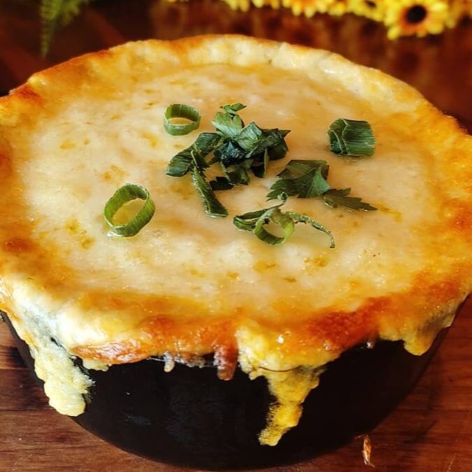 Apresentamos uma polenta ultra cremosa de milho, finamente temperada com manteiga de primeira qualidade, que cria uma base saborosa e aconchegante para o prato. O protagonista é o frango cuidadosamente desfiado e bem temperado com molho de tomate e cenoura, que oferece uma textura suave e um sabor rico, que se funde harmoniosamente com a polenta. Tudo é coroado com generosa camada de queijo mussarela, que gratinamos até atingir o ponto perfeito de derretimento e crocância. Uma obra-prima em sabore, textura de uma forma sublime!