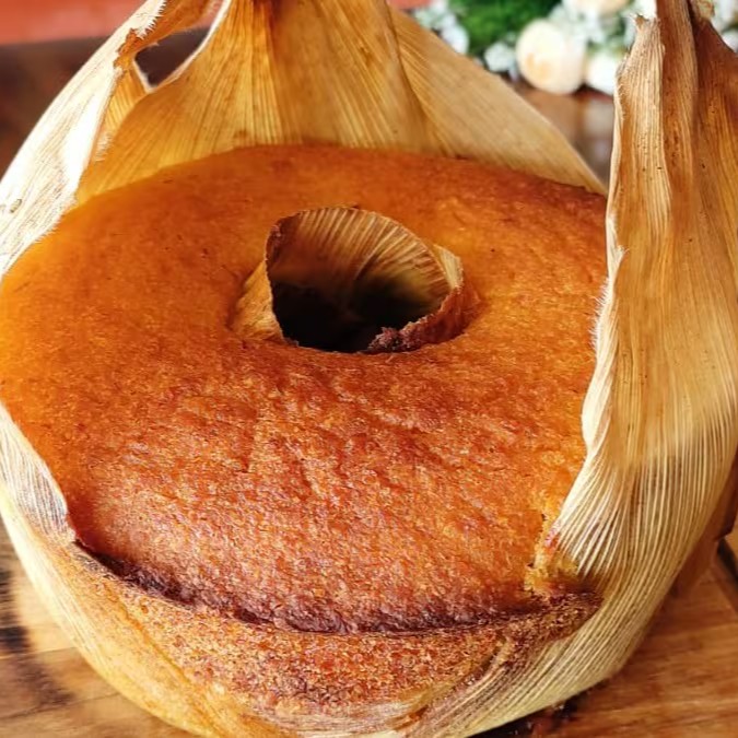 'Bolo Pamonha' . Este é um bolo tradicional, inspirado em uma receita de pamonha, desprovido de leite, fermento, farinha e ovos. Preparado com cuidado meticuloso, este prato é uma opção irresistível para quem aprecia sabores genuínos e uma alternativa fantástica para os que procuram opções sem lactose, glúten e ovos. Sua textura suave e seu sabor distintamente adocicado prometem uma experiência culinária inesquecível a cada mordida.