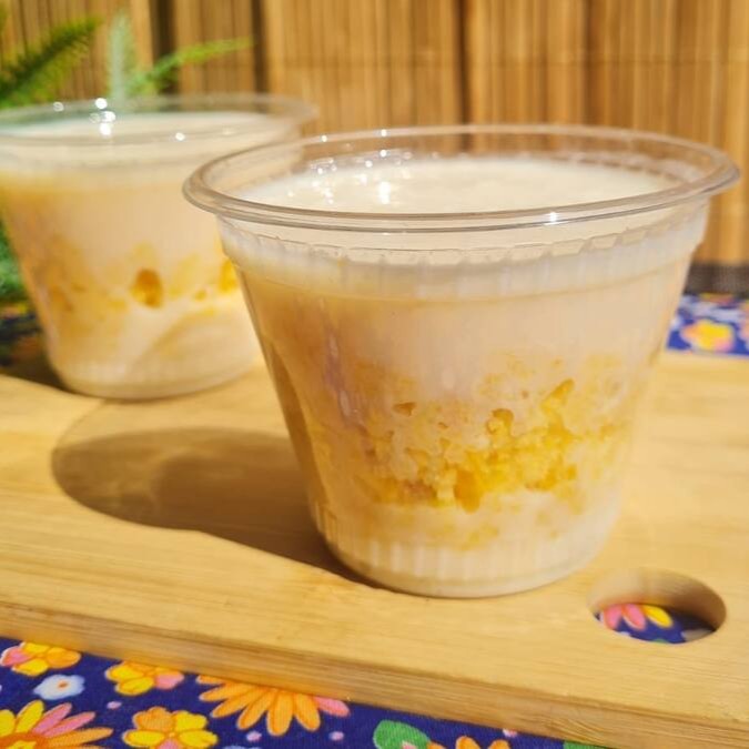 Apresentamos nosso irresistível Pudim de Milho, servido numa apresentação moderna e prática no copo. Este querido clássico da confeitaria brasileira ganha um toque inovador com o sabor adocicado e único do milho. A calda de caramelo, feita à perfeição, acrescenta uma camada extra de doçura, tornando cada colherada uma experiência verdadeiramente saborosa. Ideal para qualquer momento do Dia, esse doce promete encantar o paladar. Experimente e deixe-se seduzir por esta deliciosa tentação!
