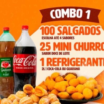 Combo 1 (100 Salgados + 25 Churros + 1 Refrigerante 2l)