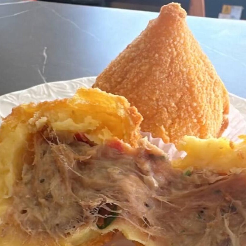 Coxinha de carne com massa de mandioca frito grande
