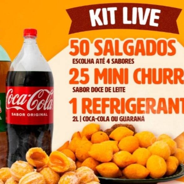 Kit Live (50 Salgados Fritos+25 Churros+1 Refrigerante 2l)