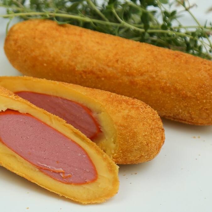 Empanado de salsicha grande frito