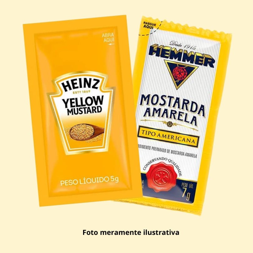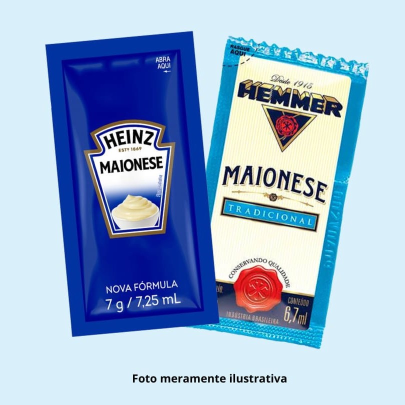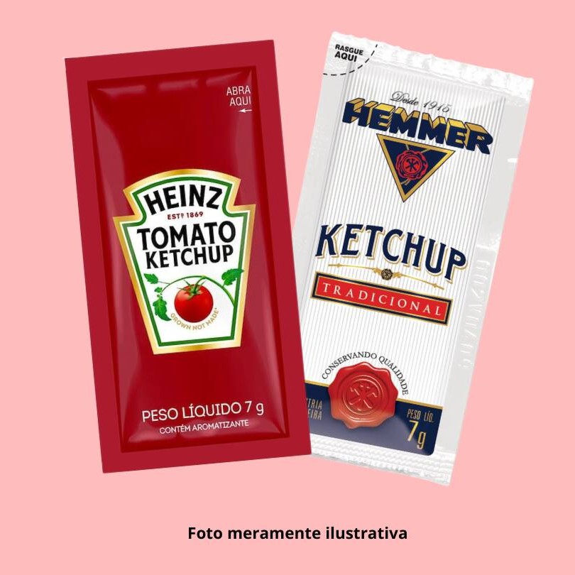 Os saches podem variar entre a marca Heinz ou Hemmer e será enviado pelo restaurante de acordo com à disponibilidade no momento da compra.