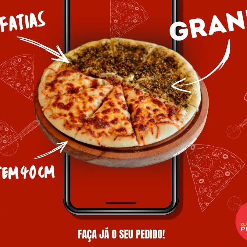 Nessa categoria você vai encontrar todos os sabores no tamanho grande (doze fatias) e pode selecionar até dois sabores, mas se optar por apenas um sabor, basta clicar três vezes nele mesmo. Serve de 3 à 4 pessoas dependendo do sabor. * A pizza de doze fatias mede 40 cm.