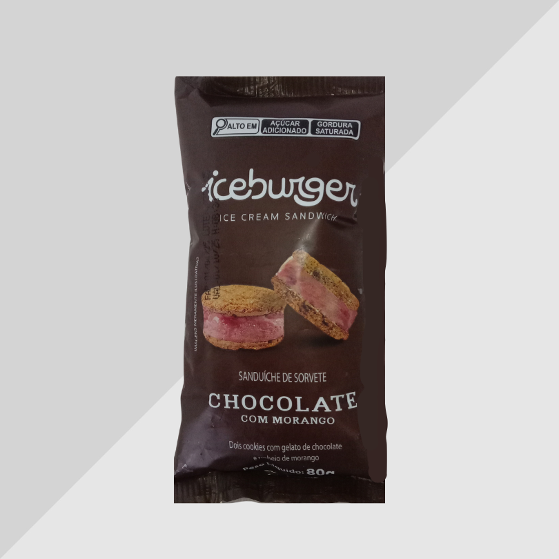 São duas Bolhachas de cookies com recheio de sorvete de chocolate e calda de morango.