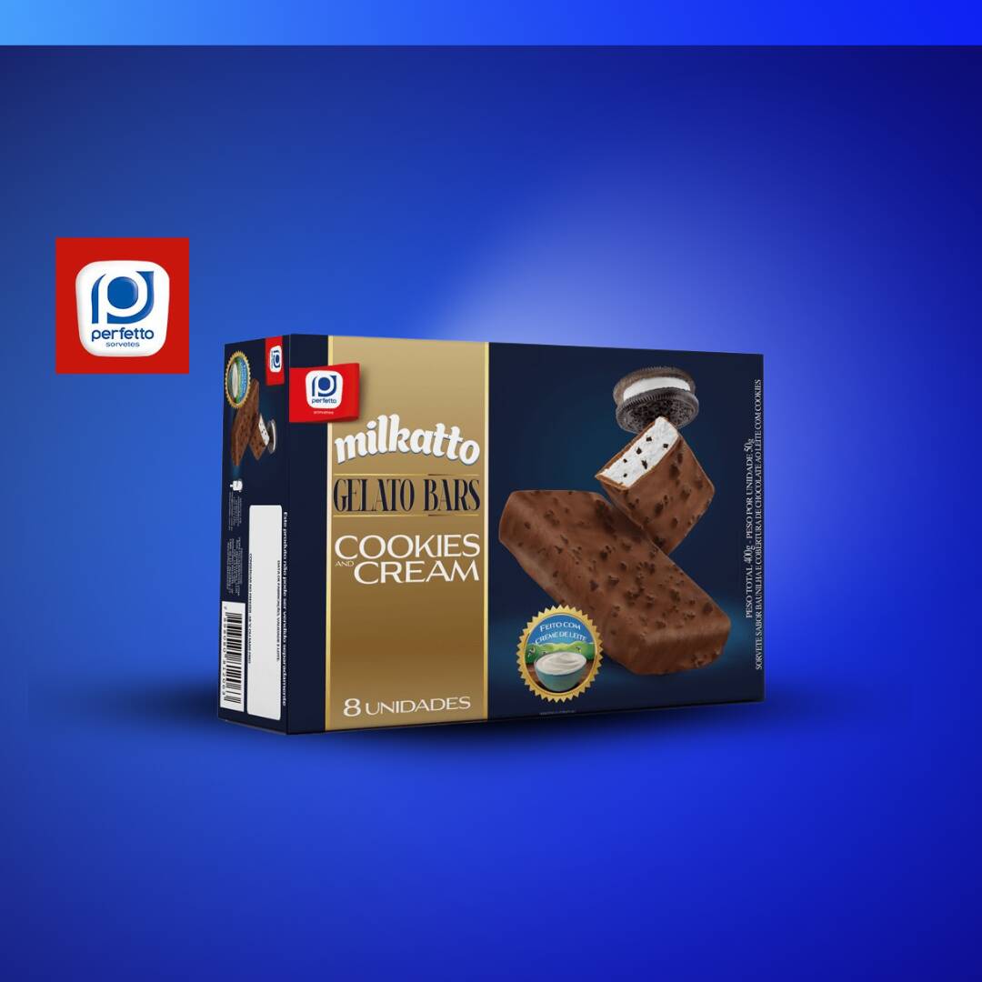 Milkatto cookies and cream é muito mais do que uma barra de sorvete comum é uma experiência de sabor única! Feito com um delicioso creme de leite, o Milkatto combina a crocância dos “cookies and cream” com uma cobertura especial de chocolate ao leite, criando uma sobremesa que vai deixar qualquer um com água na boca. Perfeita para qualquer momento do dia, essa barra de sorvete é a escolha ideal para quem ama sobremesas deliciosas e bem equilibradas.