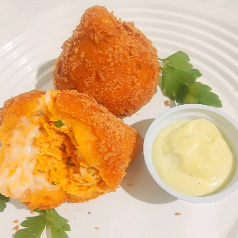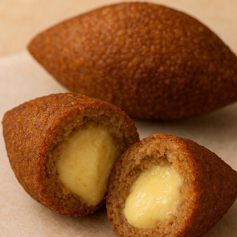 Kibe frito recheado com requeijão e mussarela, individual. Aprox 140g