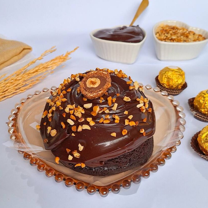 Esse bolo é dedicado aos apaixonados por ferrero. Nosso bolo chocolatudo e molhadinho, centro recheado de mousse de Nutella, coberto de brigadeiro ao leite cremoso e finalizado com castanhas de caju e meio bombom ferrero. Perfeito não é? Peso aprox 400g Serve de 2 a 3 pessoas ´Obs: Não alteramos a composição e nem montagem dos itens descritos em nosso Cardápio! ———- tags ———— Brownie , doces , chocolate , bolo , brigadeiro , Nutella , Ninho , fatia bolo , cupom , promoção , desconto , taxa grátis , tortas , cone trufado , cookie , copo da felicidade , bolo no pote , copo brownie , pistache , nozes , morangos , promoções , sobremesas , milkshake , frapê , palha italiana , pão de mel , bombom , Franuí , framboesas , cheesecake , frutas Não Alteramos Ou Modificamos Nenhum Item Descrito, Mais Garantimos Uma Experiência Maravilhosa!