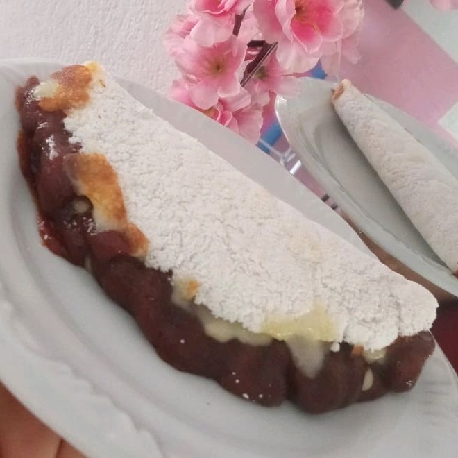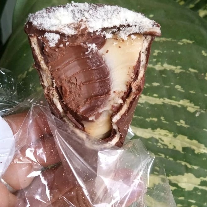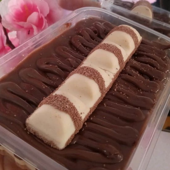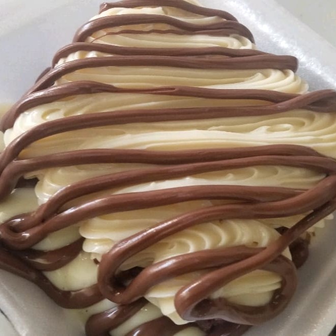 Casca banhada no chocolate Ninho Nutella e Ninho por cima maravilhoso.