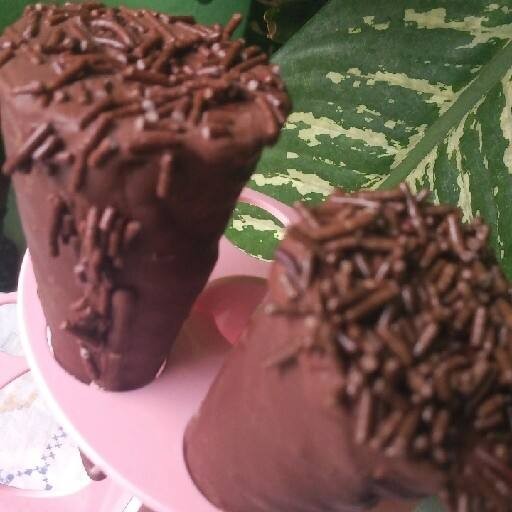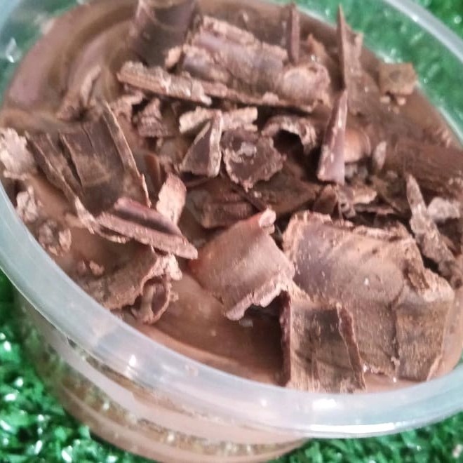 Brigadeiro massa de chocolate pedaços de chocolate massa brigadeiro e raspas de chocolate uma delícia.