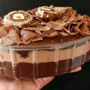 Torta Na Travessa Ferrero Rocher: Brigadeiro Meio Amargo,massa Branca Amendoim,creme De Nutella Brigadeiro,raspas De Chocolate Ferrero ,serve 5 Porção
