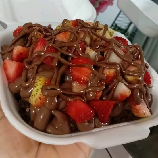Brownie feito com chocolate meio amargo, brigadeiro feito com chocolate pó da melken 50% morango e Nutella uma porção bem servida e feita com muito amor pra você que merece todo nosso carinho