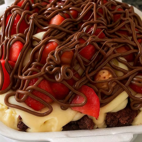 Marmita Brownie Ninho Morango E Nutella 500g Serve 2 Pessoas Super Bem.