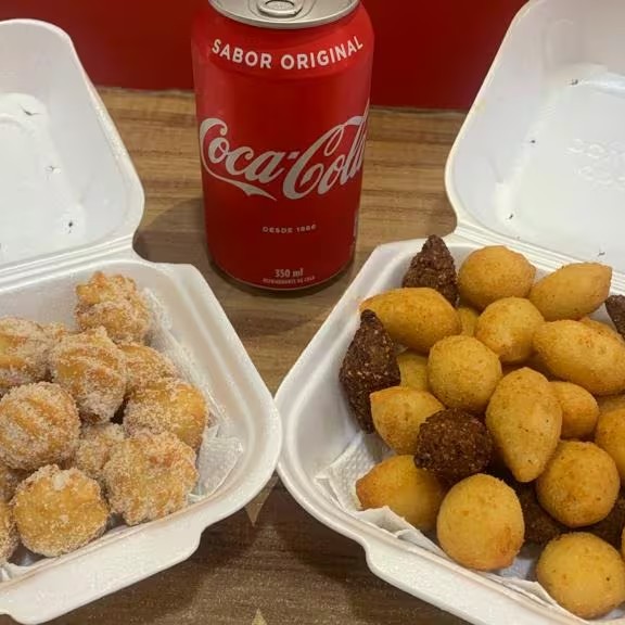 50 mini salgados + Coca-Cola 600 ml