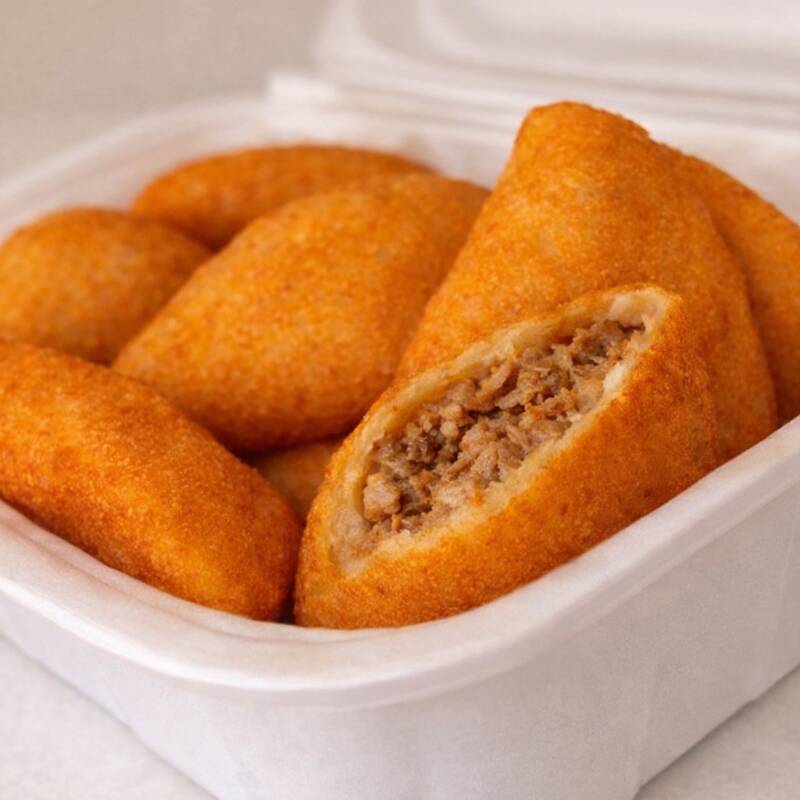 Deliciosos Mini Risoles de Carne, meticulosamente preparados de forma artesanal. Cada um pesa aproximadamente 25g, recheados com uma suculenta e saborosa carne, generosamente temperada com especiarias exclusivas da tradicional receita da vovó. Esta maravilhosa iguaria, que faz parte da nossa categoria de Mini Salgados, promete agradar até os paladares mais exigentes. Experimente e se encante com essa experiência gastronômica única!