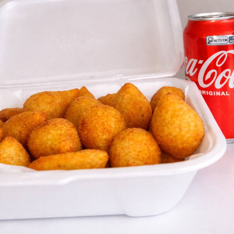 25 Mini Salgados + 2 Refrigerantes Latas