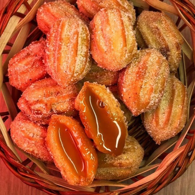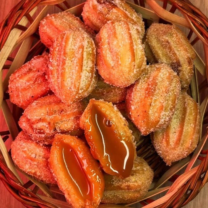 30 Churros de doce de leite fritos na hora, sequinhos e crocante. Vale a pena peça ja!