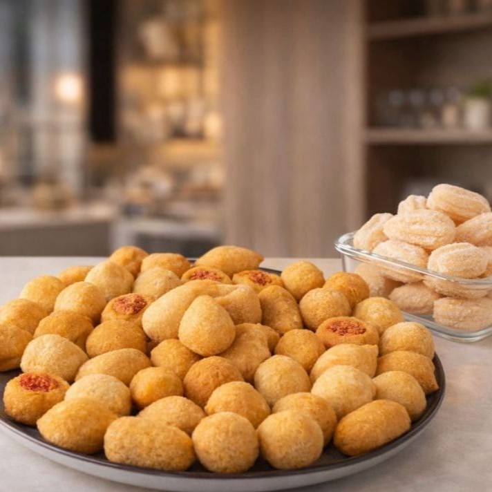 Combo ideal para festas, eventos e confraternizações. 500 salgados fritos na hora, bem recheados e crocantes, preparados com cuidado para servir bem seus convidados. Perfeito para compartilhar e garantir que ninguém fique sem.