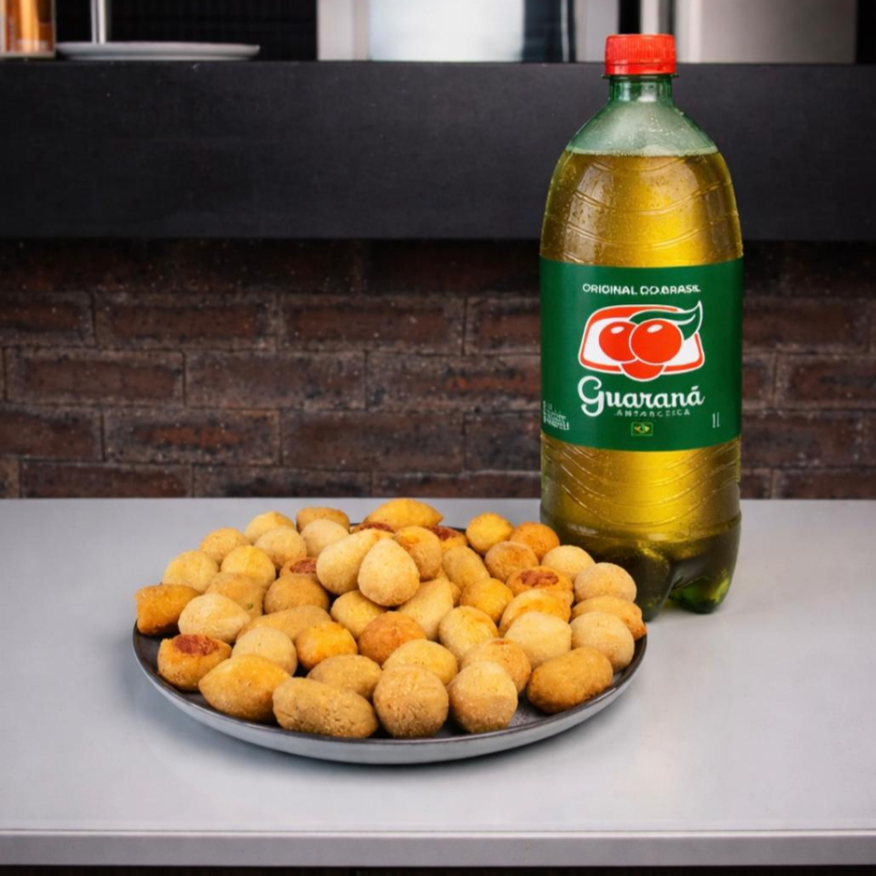 50 salgado fritos na hora, sequinhos e crocantes. + Refrigerante de 1 litro da sua preferência! Vale a pena peça ja!