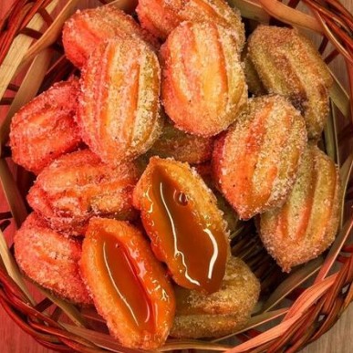 100 churros de doce de leite fritos na hora, sequinhos e crocantes. Vale a pena peça ja!