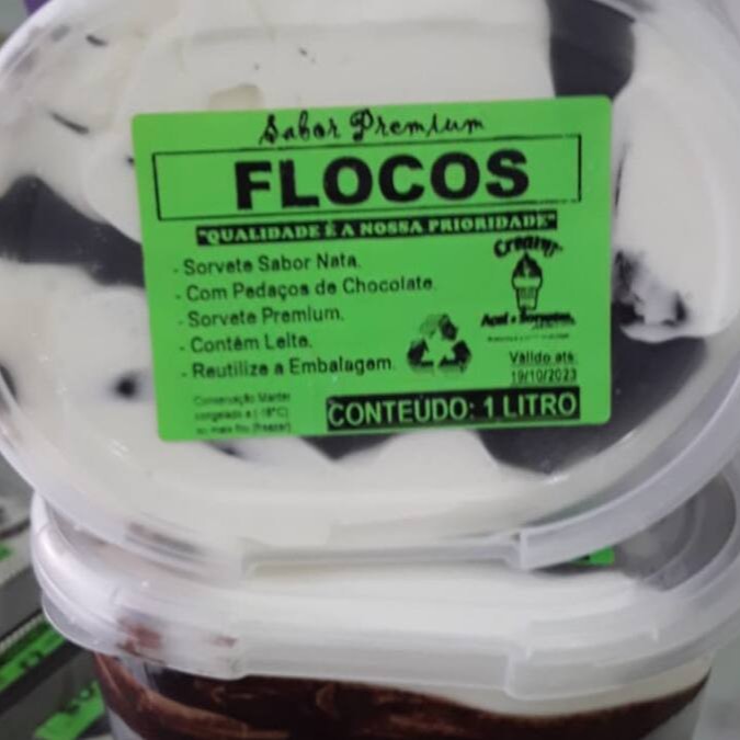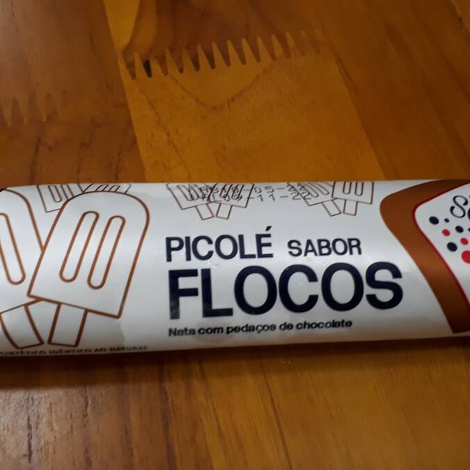 Picolé Sabor Flocos com Pedacinhos de Chocolate. Contém Leite.
