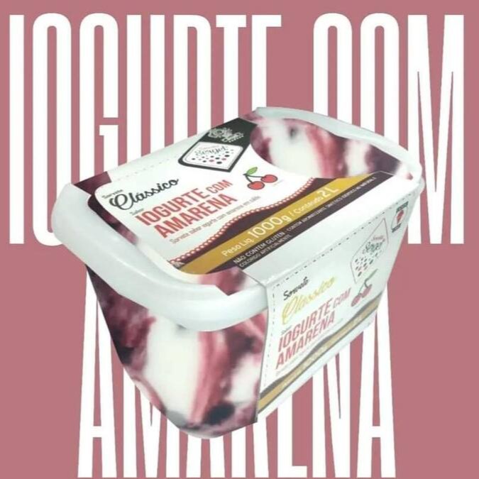 Sorvete Sabor Yorgute com Amarena em Calda. Tamanho 2 litros.