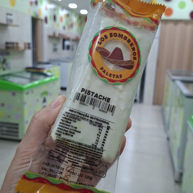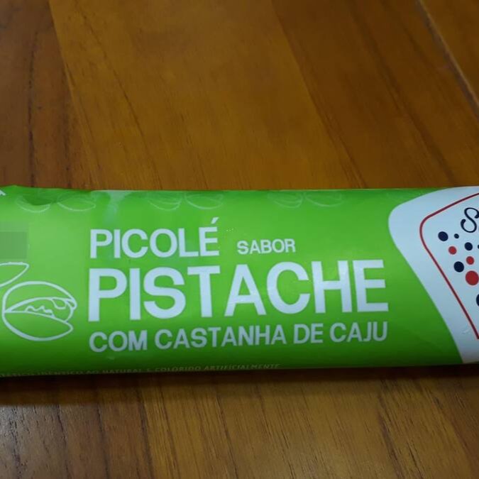 Picolé Sabor Pistache com Castanha de Caju. Contém Leite.