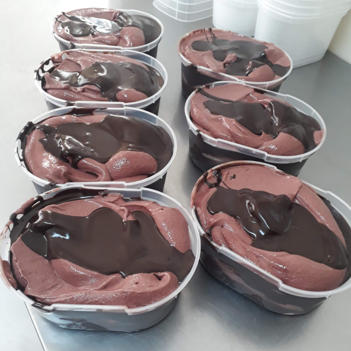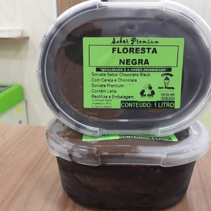 Sabor Chocolate com Recheio de Chocolate Cremoso e com Pedaços de Cereja, tamanho 1 litro, Produto Artesanal Fabricação Própria.
