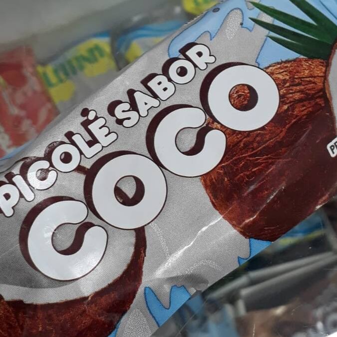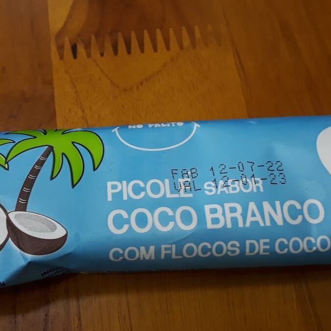 Picolé Sabor Coco Branco. Contém Leite.