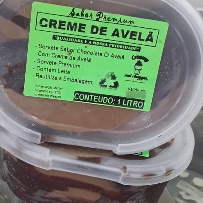 Sabor Creme com Recheio de Creme de Avelã com Bolacha Cookies e Gotas de Chocolate . Tamanho 1 1litro. Produto Artesanal Fabricação Própria