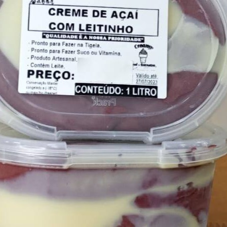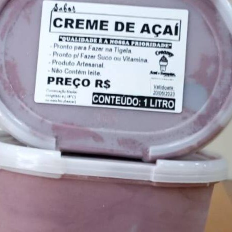 Pote de Acaí com Recheio de Leite Ninho. Açaí muito Cremoso. Tamanho 1 litro. Produto Artesanal Fabricação Própria.