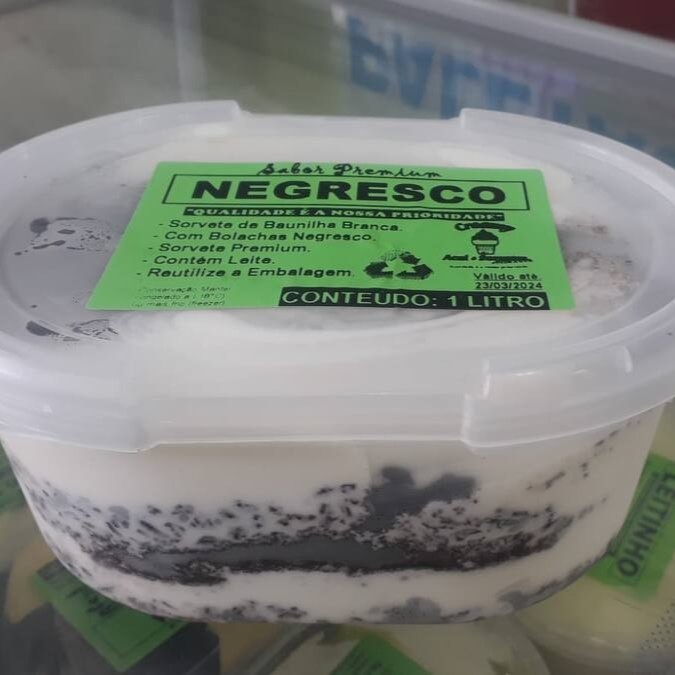 Sabor Nata com Bolacha Negresco Triturada. Tamanho 1 litro.Fabricaçãoprópria .Produto Artesanal.