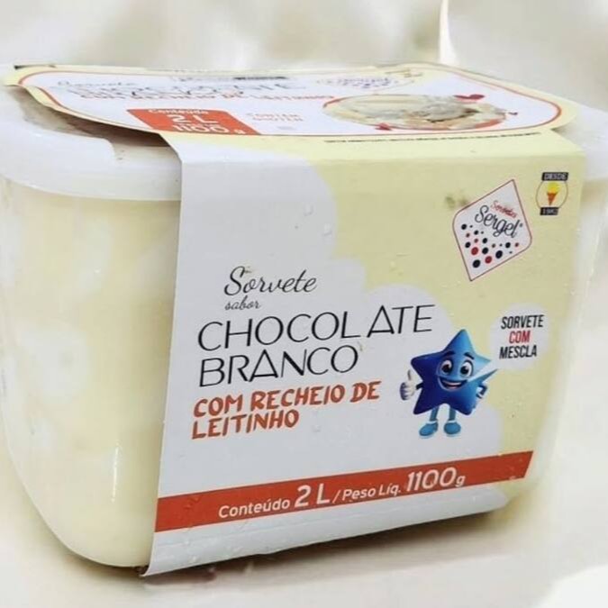 Sabor Chocolate Branco com Recheio de Leitinho. Tamanho 2 litro marca Sergel