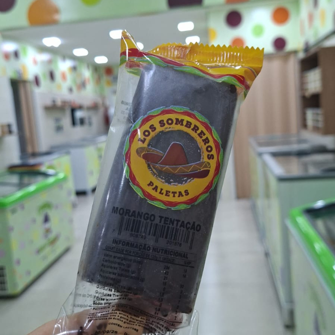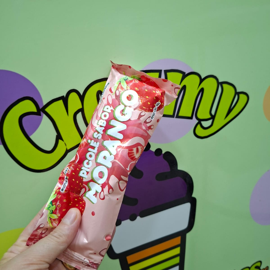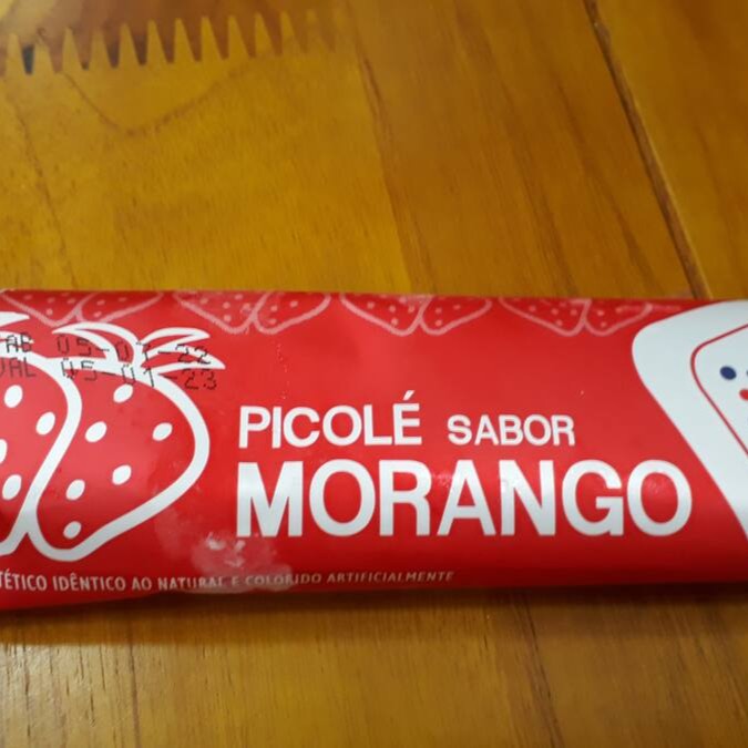 Picolé Sabor Morango. Contém Leite.