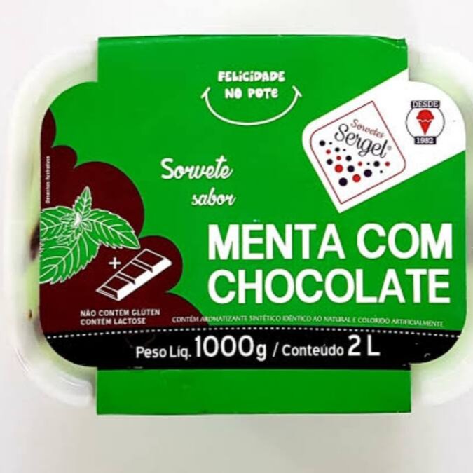 Pote sabor Menta com pedaços de Chocolate. Tamanho 2 litros marca Sergel