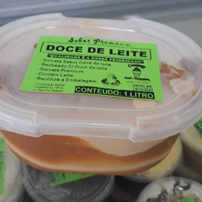 Sorvete Sabor Doce de Leite ( Feito com doce de leite integral). Tamanho de 1 litro. Sorvete Artesanal. Fabricação Própria.