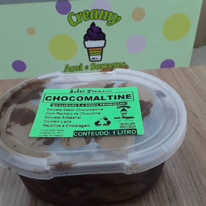 Sorvete Sabor Chocomaltine. Tamanho de 1 litro. Sorvete Artesanal. Fabricação Própria.