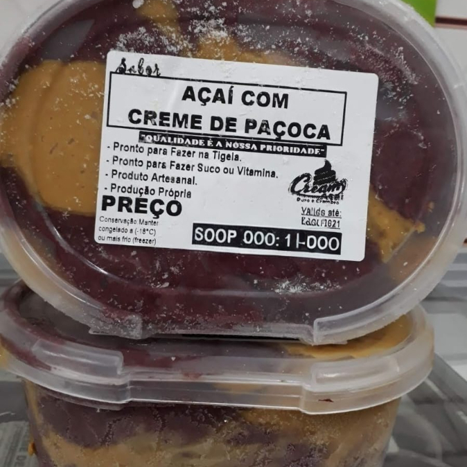 Pote de Açaí com Recheio de Pasta de Paçoca com Pedaços de Paçoca. Açaí muito Cremoso. Tamanho 1 litro. Produto Artesanal Fabricação Própria.