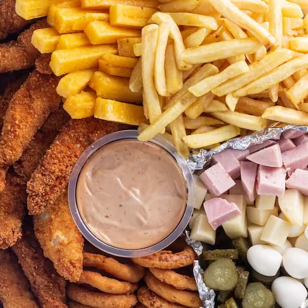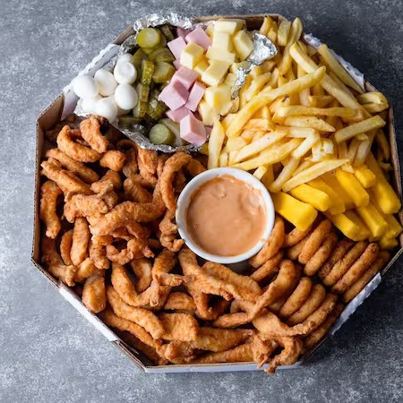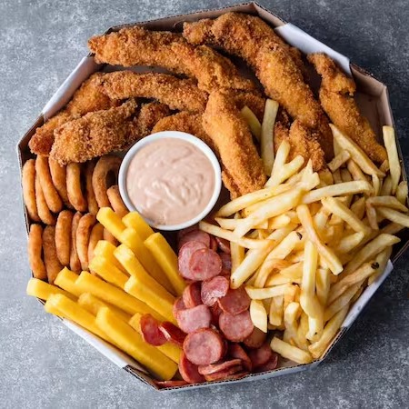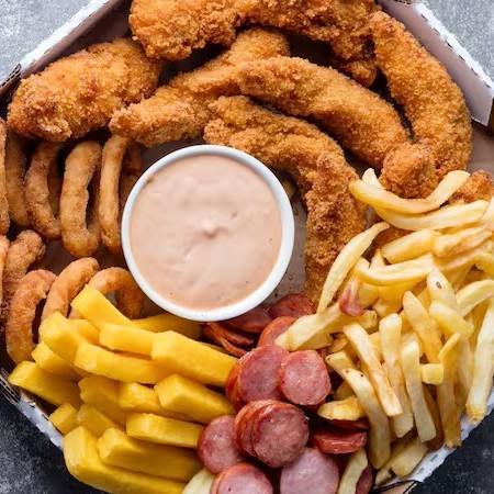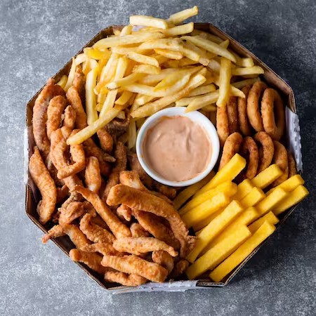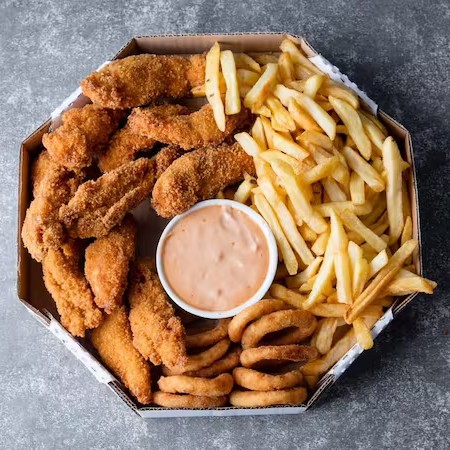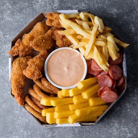 Frango Frito, Batata Frita, Onion Rings e Molho Especial (Serve até 3 pessoas)