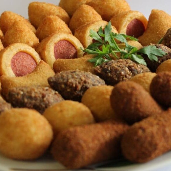 Escolha até 5 sabores - 10 de cada . 50 salgadinhos seve 4 pessoas , ticket medio por pessoa de R$ 11,75