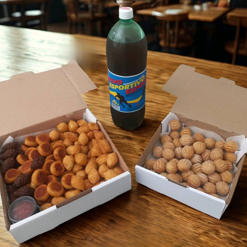 Delicie-se com 50 minis salgados de 16g + 1 guarana esportivo 2lt para acompanhar sua refeição, com a melhor massa feita a base de batata, muito crocante e saborosa.