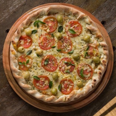 Molho, Mozzarella, Tomate Fatiado, Manjericão, Orégano. **Escolha os Itens Disponivel** ( Não Trocamos Itens )