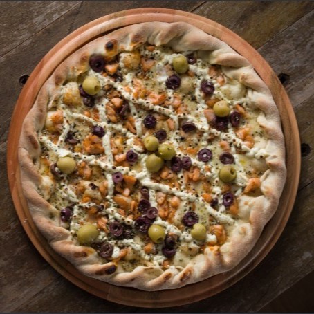 Molho, Mozzarella, Salmão, Cream Cheese, Gergelim Preto, Orégano. **Escolha os Itens Disponivel** ( Não Trocamos Itens )