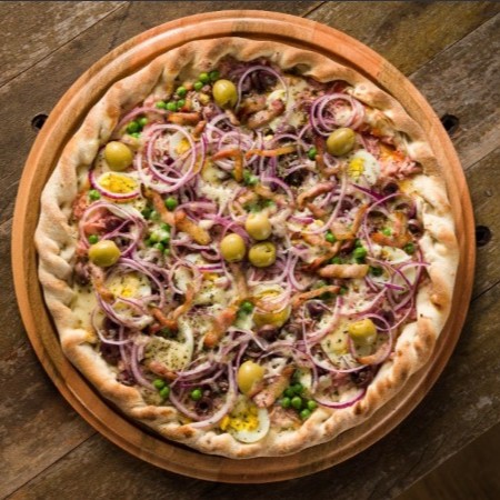 Molho, Mozzarella, Presunto, Ovo, Ervilha, Bacon, Orégano. **Escolha os Itens Disponivel** ( Não Trocamos Itens )