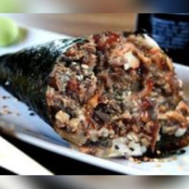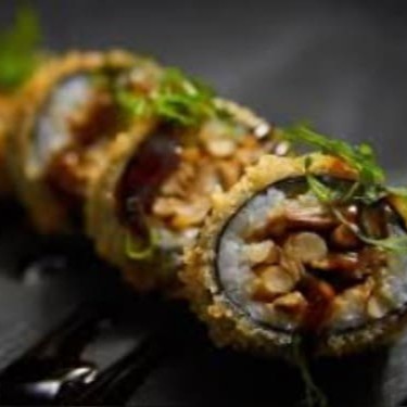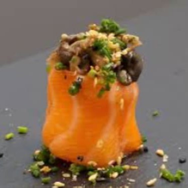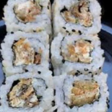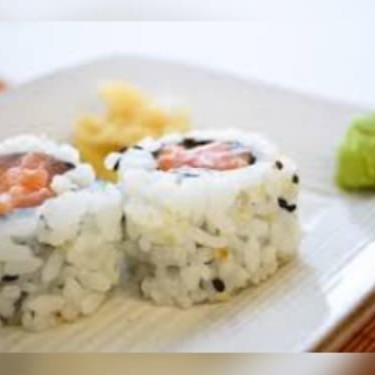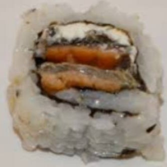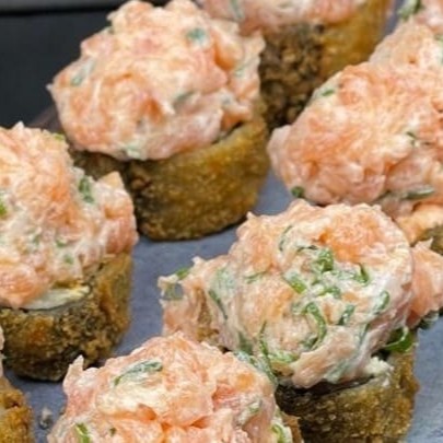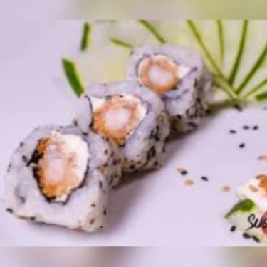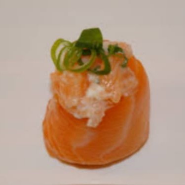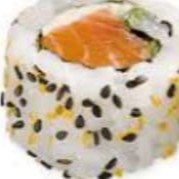 Base de arroz, salmao cru, creme cheese, cebolinha, gergelim e nori ( alga)