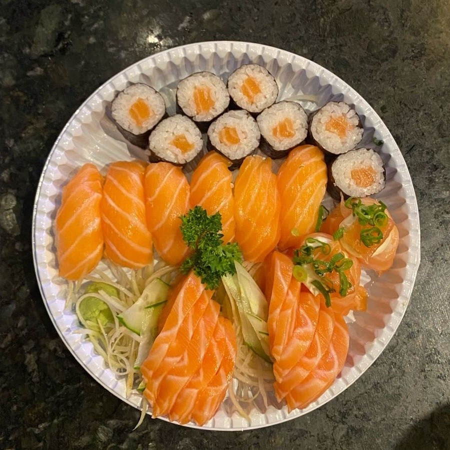 5 Sashimis 8 hossomakis de salmão 4 uramakis de salmão 6 niguiris