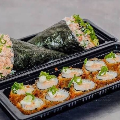 1 temaki de salmão, 2 niguiri de salmão, 2 uramaki de salmão, 10 hot hool e 1 refri 200ml